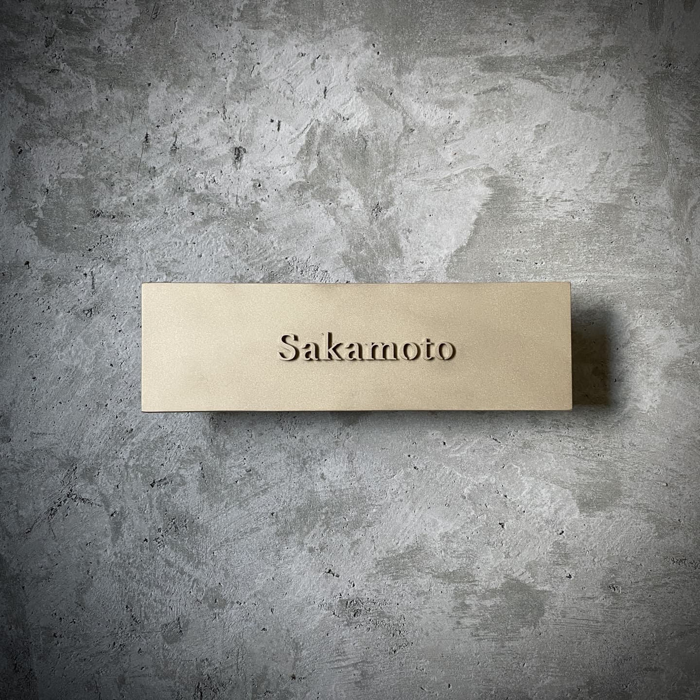厚み10mmのプレート(真鍮orステンレス)より文字部をくり抜き、くり抜いた箇所に12mmの切り文字を埋め込む工法の表札です。