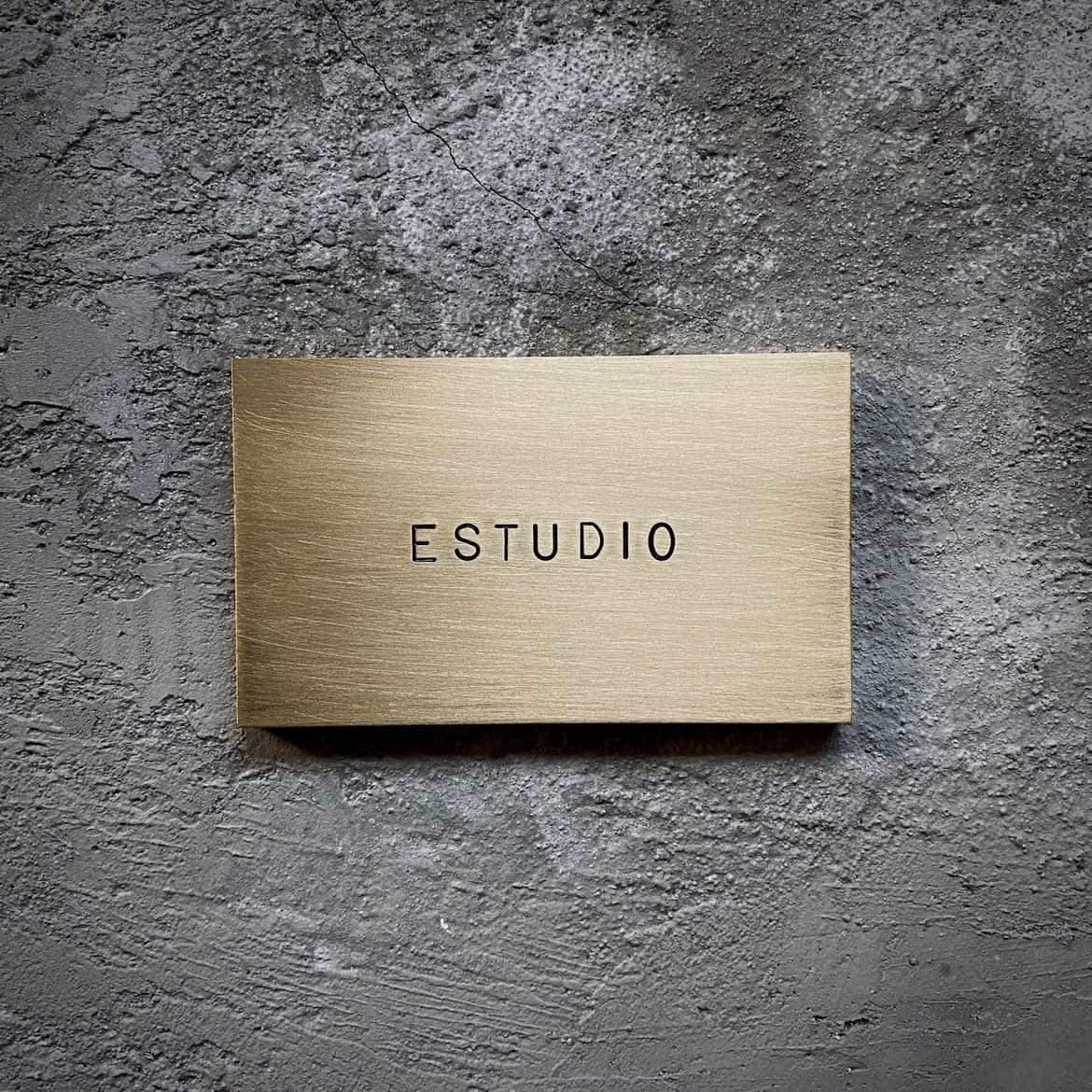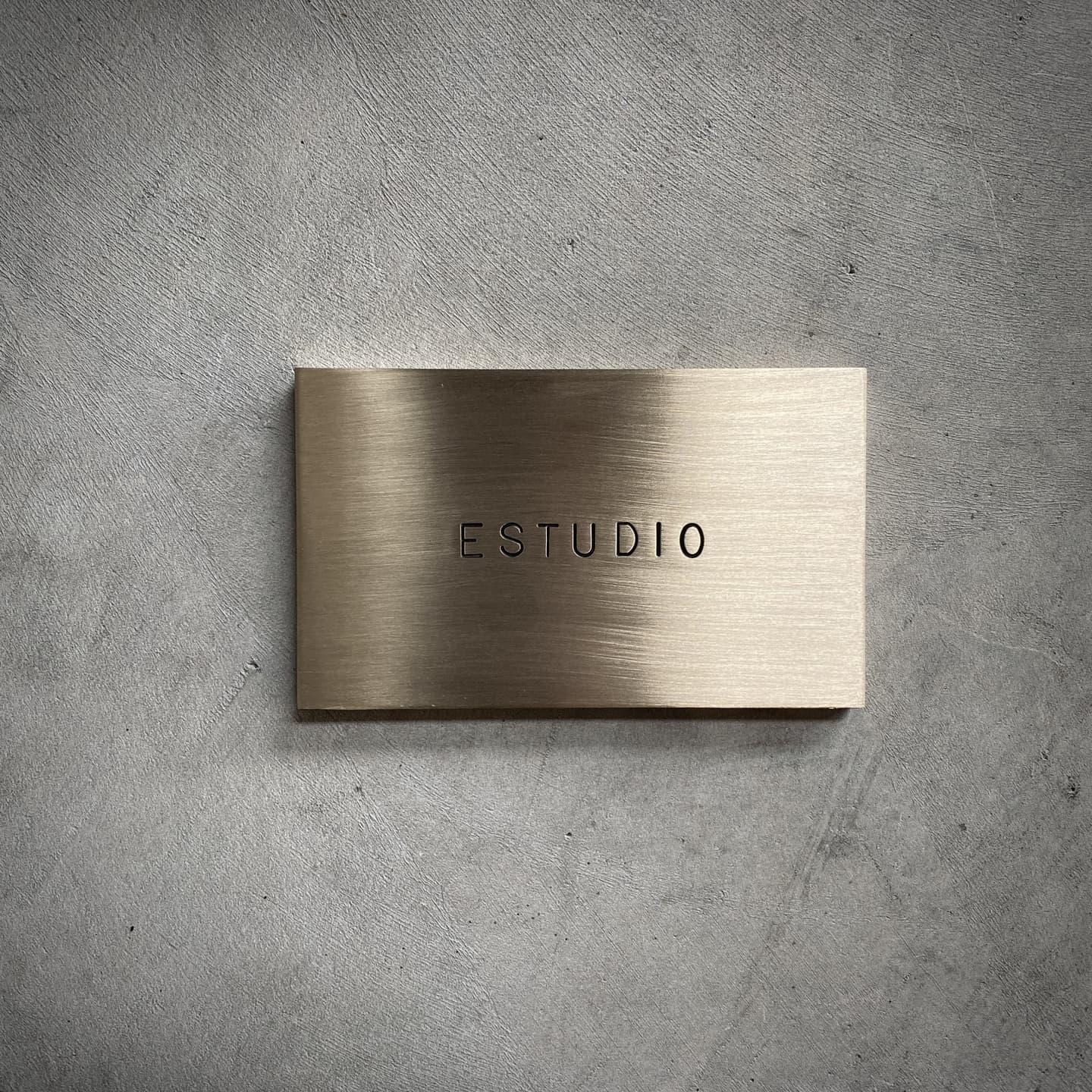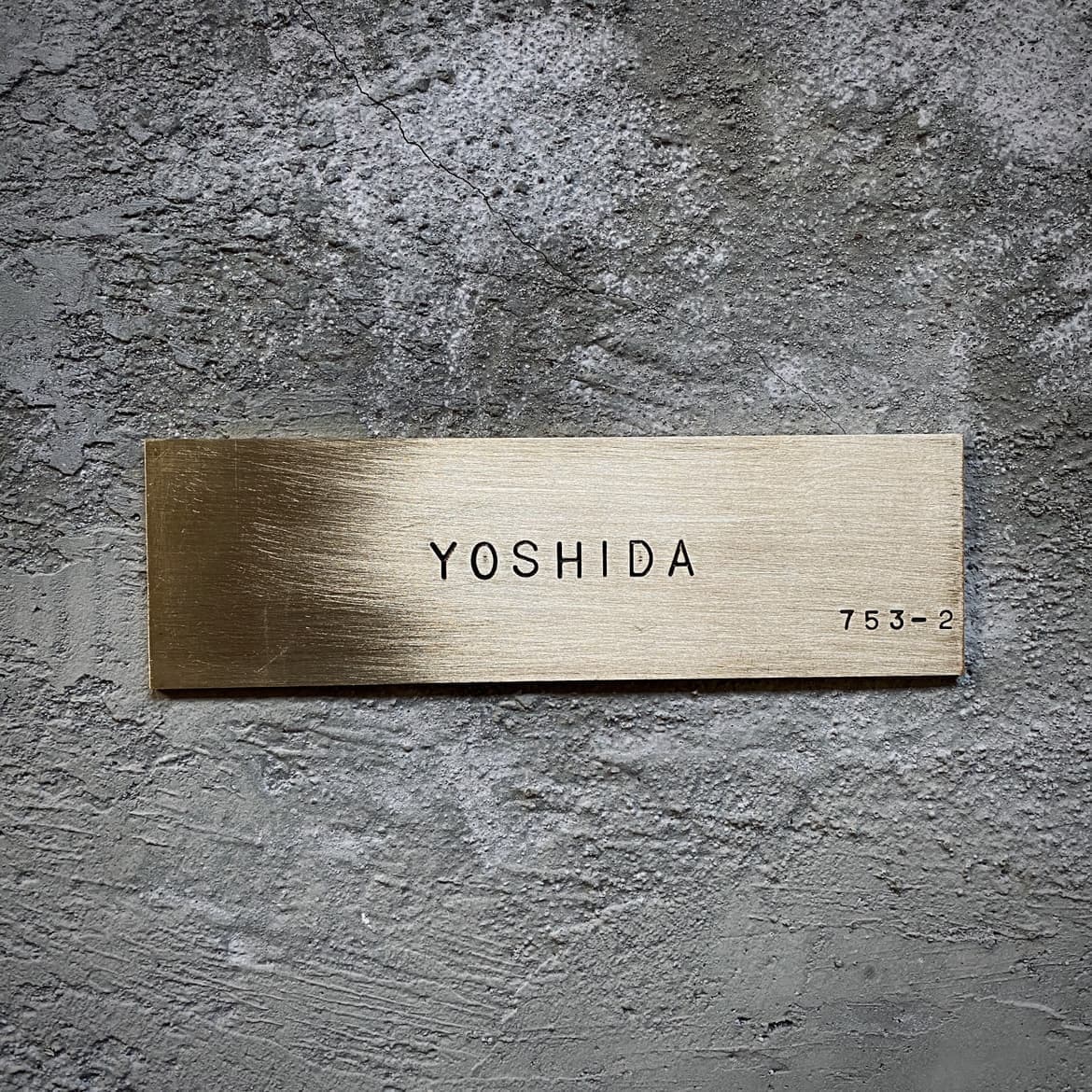 刻印を真鍮プレートに打ち込むシンプルな表札です。