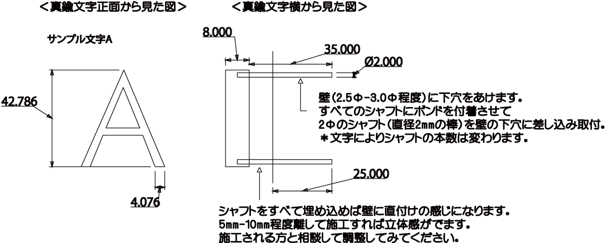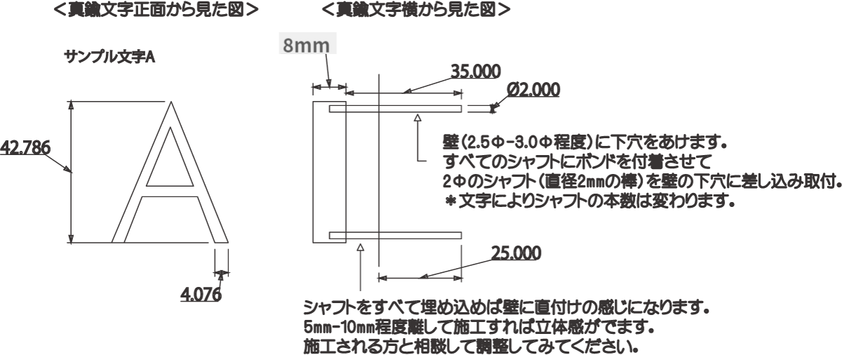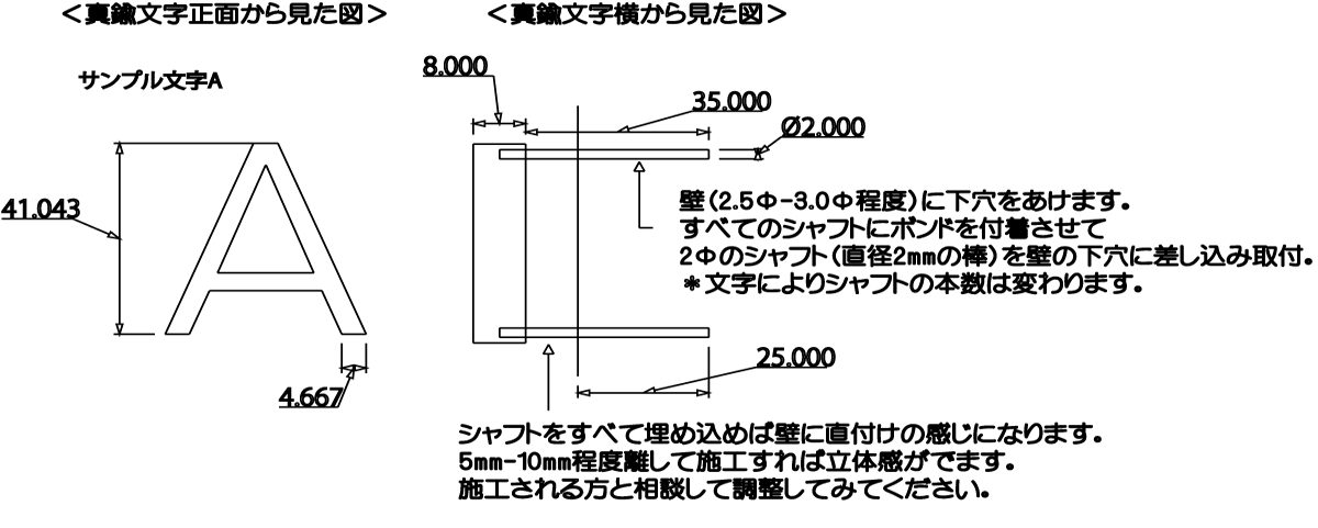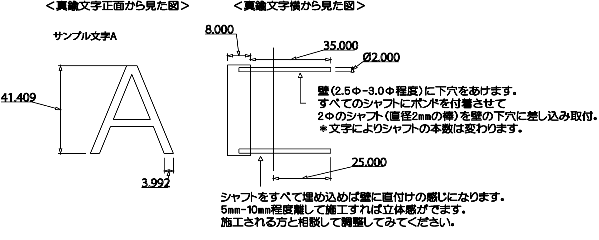 ・切り文字の厚みは真鍮材、ステンレス材共に厚み8mmです。