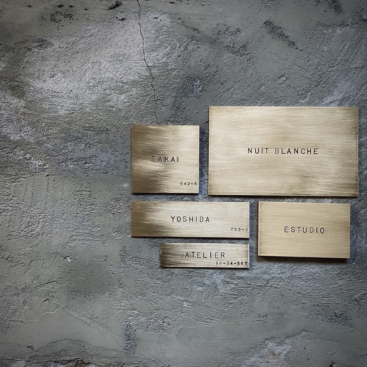 刻印を真鍮プレートに打ち込むシンプルな表札です。