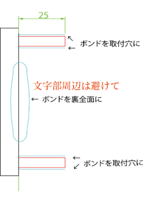 *一体型表札、くり抜き表札の場合、裏面の文字周辺に接着剤を付けた場合、接着剤が文字の隙間から全面に浸透しますので避けて下さい*
