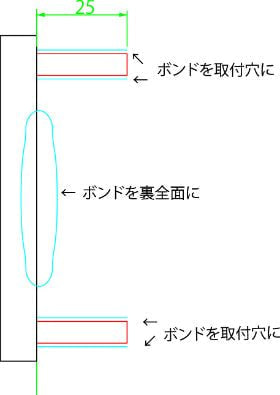 接着剤を差し込み穴に注入後固定、不安定になりそうな場合は表札裏面全体につけて固定してください。